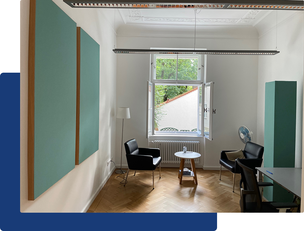 Als spezialisierte und erfahrene Raumakustik-Firma mit Standorten in Neufinsing und Wettenberg setzten wir deutschlandweit Projekte für Unternehmen, Architekten und öffentliche Einrichtungen um. Durch unsere jahrzehntelange Erfahrung wissen wir in jeder Situation, welche Lösung zur individuellen Raumsituation passt.